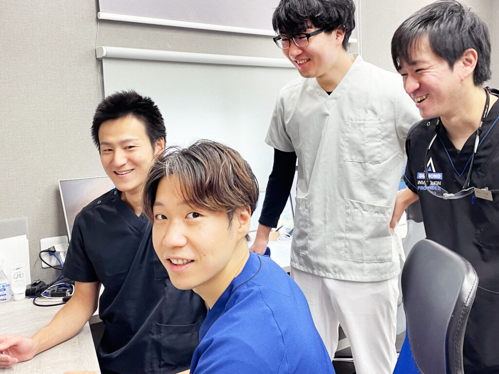 また、ドクターも多く在籍しているため、色々な角度から治療について相談しやすいからです。実際に働いてみて、自分の治療で気になることや、不安なことは先輩ドクターに聞いたり、フィードバックを貰うことができるのは強みだと思っています。